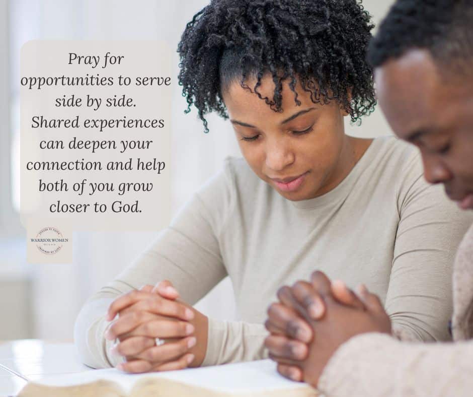 Pray for opportunities to serve side by side, whether it’s through volunteering at church, participating in a mission trip, or helping those in your community.